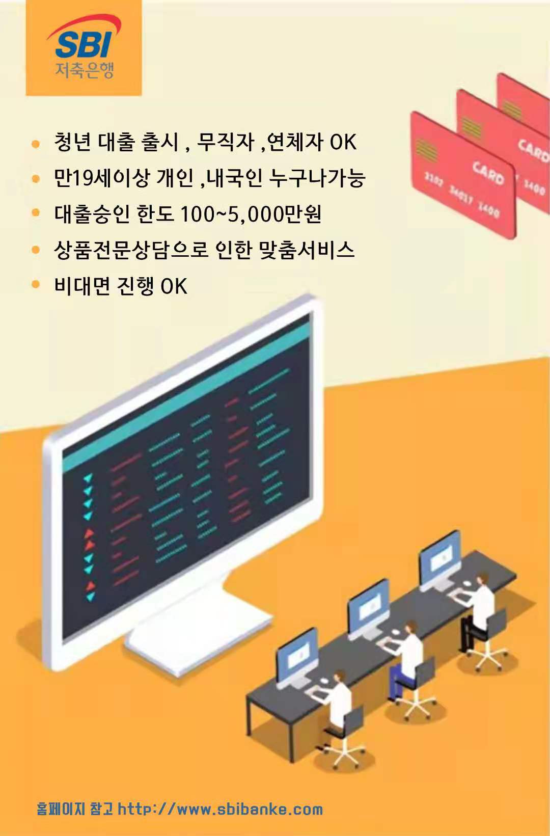 베트남이슈 (주)SBI저축은행 페이지 정보 댓글 0건 작성일 21-07-14 17:00 본문 (주)SBI저축은행 청년 대출 출시 , 무직자 ,연체자 OK 만19세이상 개인 ,내국인 누구나가능 대출승인 한도 100~5,000만원 상품 전문상담으로 인한 맞춤서비스 비대면 진행 OK *오픈채팅방 상담* *카카오톡:https://open.kakao.com/o/sWklGKmd 세상의 금융을 바꿔 나갑니다. 추천0 페이스북 공유 트위터 공유 구글+ 공유 검색 목록 댓글목록 댓글목록 등록된 댓글이 없습니다.